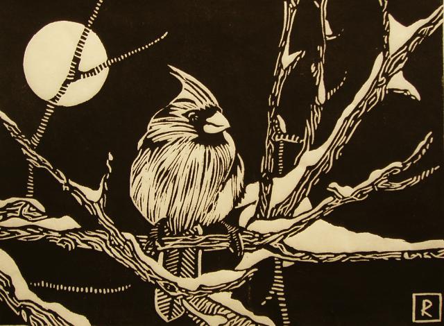 "Plump Cardinal by Moonlight" 9"X 12 $90